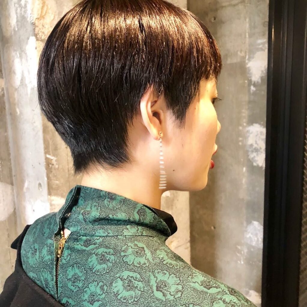 ショートは正面より横顔が重要です。後頭部の丸みと首のラインが整うと、横から見たときに一気に若く見えます。