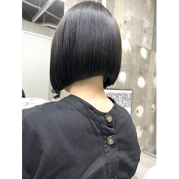 一方、geekのカットは毛流れとラインの構築でボリュームをコントロール。